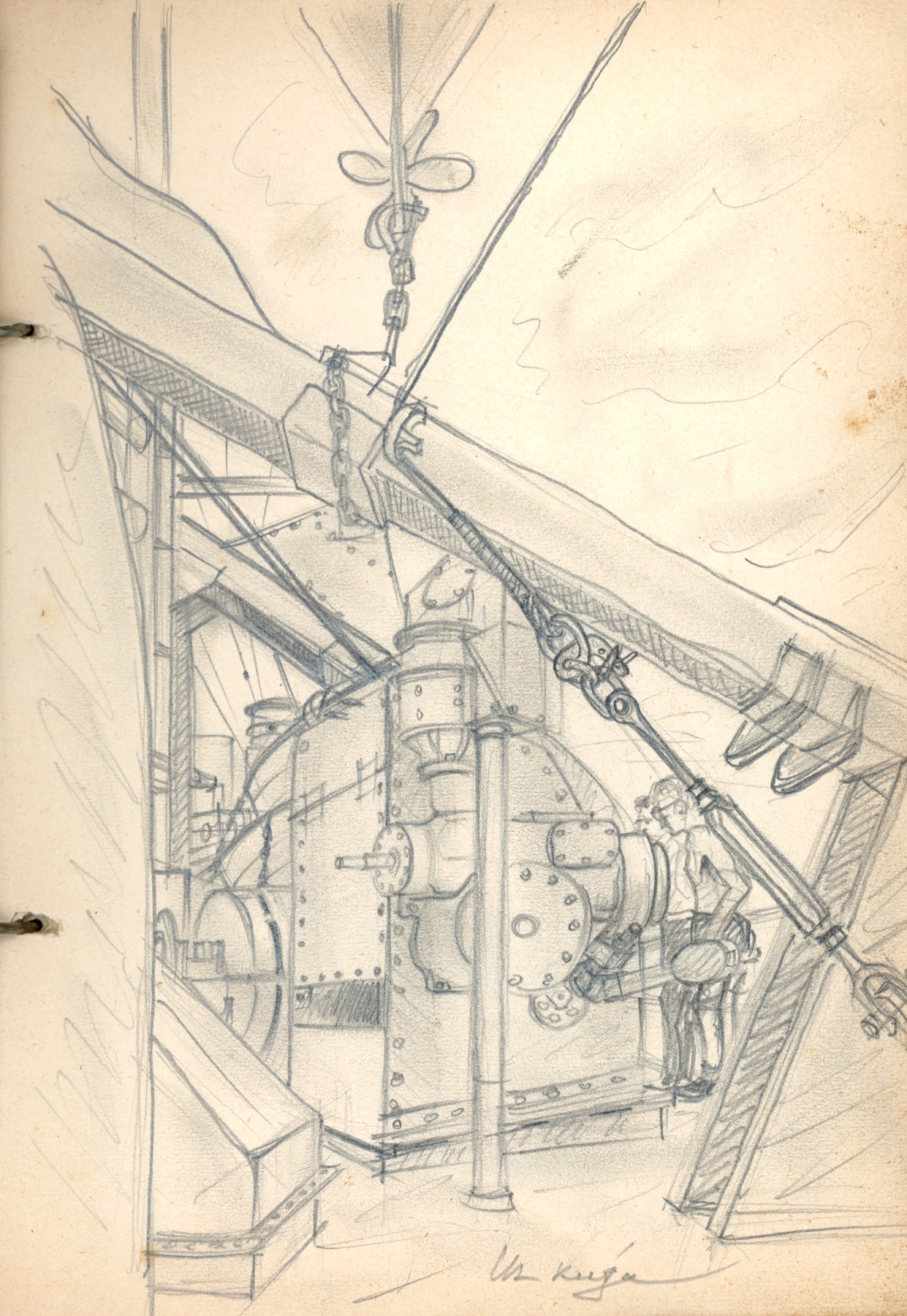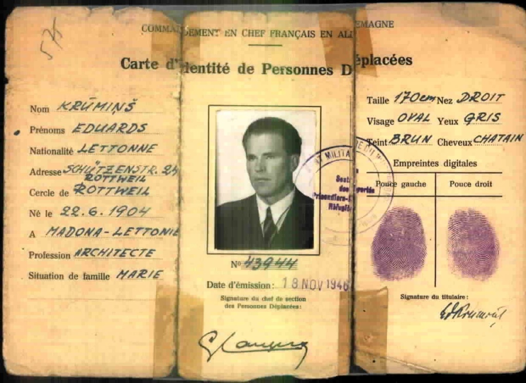 Eduards (Edžus) Krūmiņš (1904 Madonā — 1984 Melburnā, Austrālijā) bija latviešu arhitekts, kurš pēc Otrā pasaules kara nonāca bēgļu nometnēs Vācijā. 1949. gadā Eduards transportkuģī izceļoja no Vācijas uz savu jauno mītnes zemi Austrāliju. Šajā laikā viņš zīmēja skices paštaisītā kladē ar vākiem, kas izgatavoti no kartona augļu kastes.