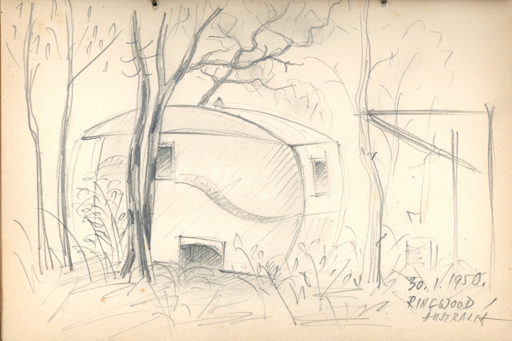 Eduarda Krūmiņa skiču klade sniedz vizuālu ieskatu šajā pārejas posmā: tajā redzamas ainas no dzīves bēgļu nometnēs, pieturas brīdis Neapolē Itālijā un ikdiena uz kuģa klāja. Pēdējā skice kladē attēlo dzīvojamo vagoniņu Ringwood, Melburnā – vietu, kur Krūmiņš dzīvoja savos pirmajos gados Austrālijā.