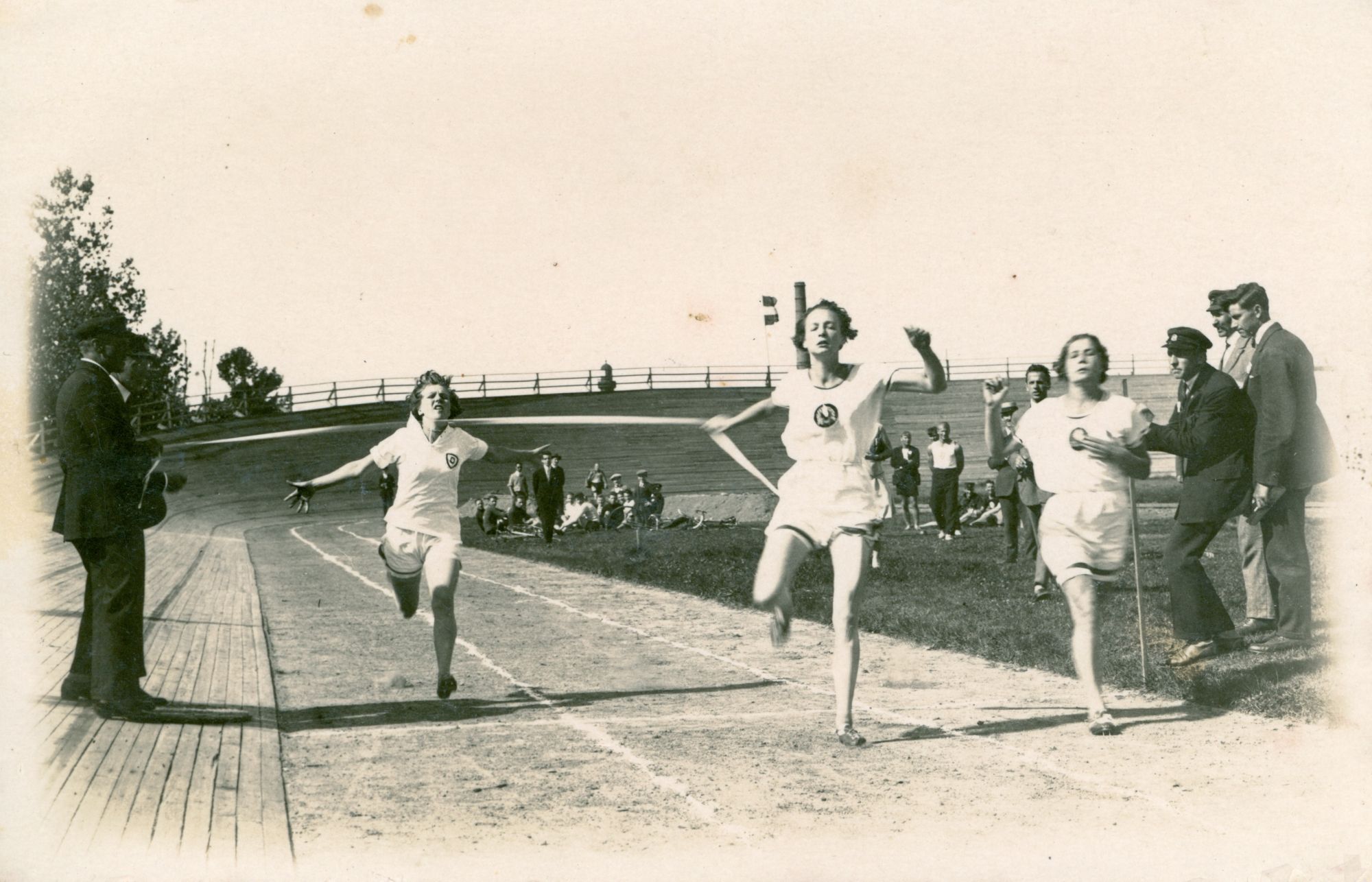 Zinaida Liepiņa uzvar skriešanas sacīkstēs Liepājā, 20. gs. 20.tie gadi. No Latvijas Sporta Muzeja krājuma.