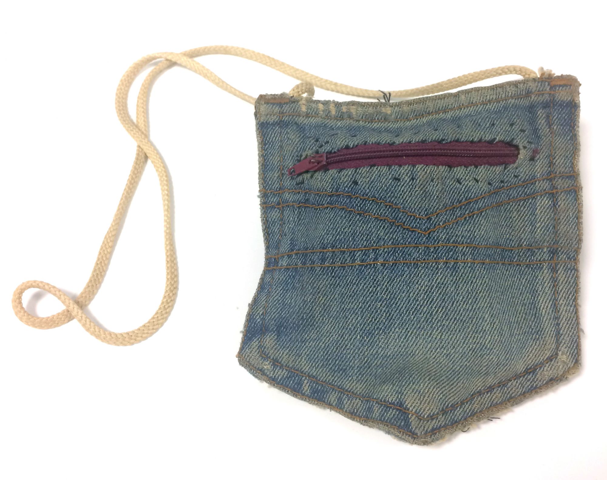 Maciņš, izgatavots no džinsu bikšu kabatas. To darinājis Laimons Spridzāns Vācijā 1993. gadā. “Mēneša priekšmets”, marts 2018.